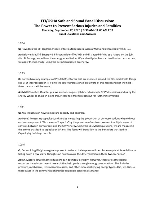 EEI members have prioritized SIF elimination and through collaboration across the industry are implementing a series of actions to achieve this goal through the Power to Prevent SIF Initiative.
