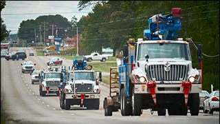 Crews are dispatched to repair lines that will return service to the largest number of customers in the least amount of time. Service lines to neighborhoods, industries, and businesses are restored systematically.